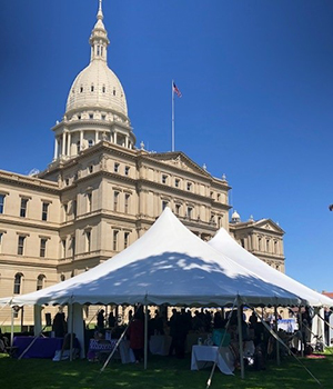 Michigan Catholic Conference (MCC) partnered with the Michigan Family Forum this week to host an event on the Capitol lawn called "Empowering Women, Strengthening Communities." The day connected community partners from around the state with their state lawmakers, highlighting the tremendous work carried out by pregnancy resource centers, maternity homes, and adoption agencies. The organizations explained the services they offer to assist pregnant women in need, new moms, and adoptive families. In total, twenty-five pregnancy resource centers, two maternity homes, and five adoption agencies came to Lansing to meet with lawmakers, primarily representing the southern portion of the lower peninsula. Catholic Charities West Michigan and Catholic Charities of Southeast Michigan were among those groups participating.